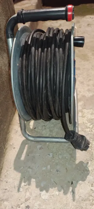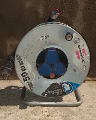 Vendo mi enrollacables Brennenstuhl de 50 m con estructura de acero y protección IP44, en estado casi nuevo. Cable completamente intacto, sin roturas Carcasa de acero en perfecto estado Asa ligeramente dañada (aprox. 1 cm en la parte inferior, no afecta la comodidad al transportar) 3 enchufes Schuko de alta calidad Cable de goma robusto H05RR-F 3G1,5 Protección contra sobrecalentamiento con luz de control Fácil de transportar gracias al asa CablePilot Longitud: 50 m – ideal para casa, jardín o construcción Ubicación: Pago del Humo – solo recogida en persona