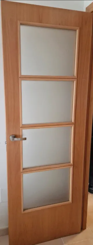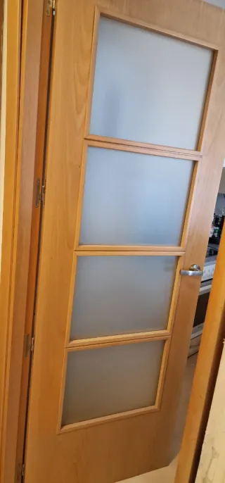 Se venden dos puertas de interior de madera y cristal - Fabricadas en madera y cristal - Incluye marco, jambas y herrajes - Las medida de cada puerta es 72,5 x 203 cm. - El precio incluye las 2 puertas