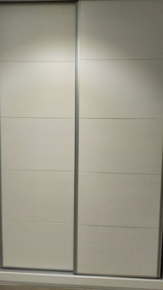 Se venden dos puertas correderas de armario en excelente estado, prácticamente nuevas. - Diseño moderno y minimalista. - Acabado en color blanco mate. Medidas: ancho 73.5cm alto 2.23cm