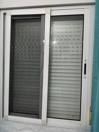 Ventana doble de exterior con persiana incorporada. Ideal para aislamiento y seguridad. - Marco de aluminio blanco. - Doble cristal.climalit - Persiana enrollable de lamas de aluminio.