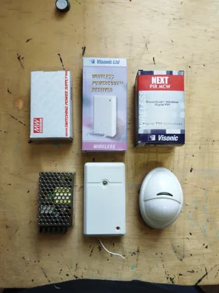 Lote de componentes para domótica y seguridad. - Fuente de alimentación MW Switching Power Supply. - Receptor Visonic Wireless Powercode. - Detector Visonic NEXT PIR MCW. 👉SE VENDE CONJUNTO👈