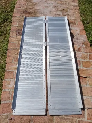 Rampa de aluminio diseñada para facilitar el acceso. Es plegable y fácil de transportar. - Material: Aluminio. - Diseño: Plegable. Medidas: 1,52 cm largo 76 cm ancho Recogido: 73 cm largo 26cm ancho Peso máximo 275 kilos