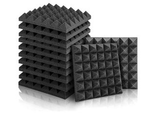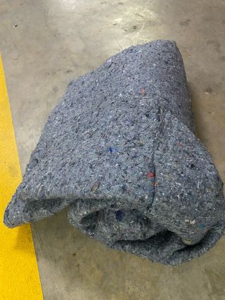 Material versátil que puede usarse como aislante acústico: hay 2 lonas o alfombras y varias piezas de aislantes en cuadrados. - Textura de fieltro con fibras mezcladas. - Color gris con motas de colores. - Rollo de material.