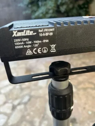 Foco LED portátil con trípode ajustable. Ideal para iluminar exteriores o áreas de trabajo. - Trípode metálico con patas extensibles. - Foco LED con carcasa resistente.