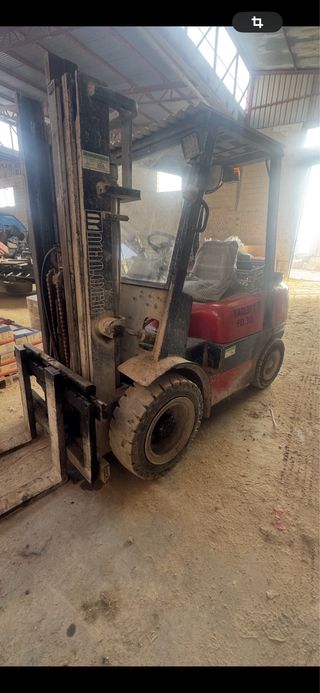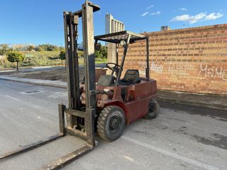 Carretilla elevadora Mitsubishi en buen estado. Ideal para trabajos de carga y descarga. - Color granate. - Ruedas en buen estado. - Mástil de elevación. - 2.500 toneladas - Eleva 3,90 metros de altura