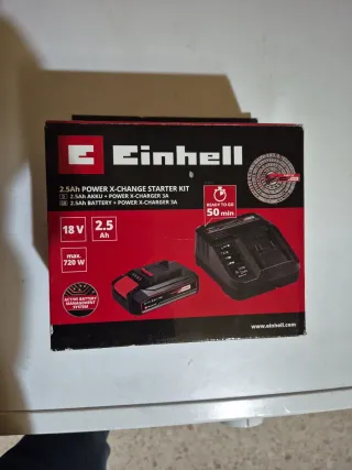 Kit de inicio Einhell con batería Power X-Change de 2.5Ah y cargador rápido. - Batería de 2.5Ah. - Cargador Power X-Charger 3A. - Sistema de gestión activa de batería. - Carga en 50 min.
