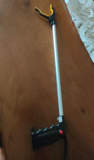 Pinza alargadera para facilitar la recogida de objetos. Se actua sobre la pinza de la punta desde el mango, cerrandola y abriendola Tiene 75 cms de longitud - Mango ergonómico para un agarre cómodo. - Mecanismo de pinza para sujetar objetos.