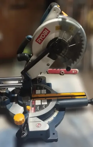 Sierra ingletadora Ryobi de 2000W, ideal para cortes precisos en madera. - Potencia de 2000W. - Disco de sierra incluido. - Base estable para trabajos seguros.