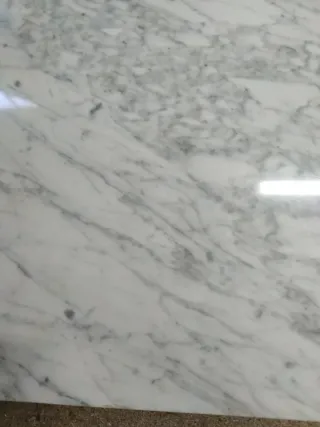 Encimera de mármol con un diseño veteado en tonos grises sobre fondo blanco. Su acabado pulido le da un aspecto elegante. - Material: Mármol natural. - Color: Blanco con vetas grises. - Acabado: Pulido.