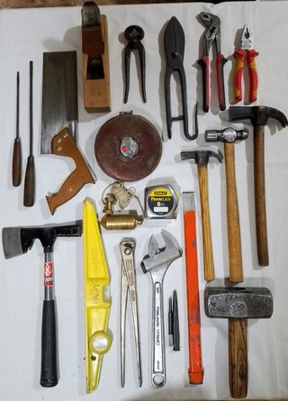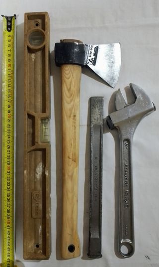 HACHA BELLOTA , NIVEL ACESA , CORTAFRÍOS ACESA , LLAVE FORJADO IRIMO , MARTILLO ACESA , MARTILLO BELLOTA , TENAZAS KNIPEX , TIJERAS PARA CORTAR METAL , SERRUCHO SCHMIDT & ZIEG , 2 DESTORNILLADORES , CEPILLO O GARLOPA ACESA , LLAVE PICO LORO , ALICATES STALWILLE , TENAZAS ANTIGUAS , METRO RABONE 10 M CHESTERMAN , METRO STANLEY 3 M , PLOMADA ANTIGUA DE BRONCE MACIZO Y PAREJA DE PUNZONES . VER FOTOS