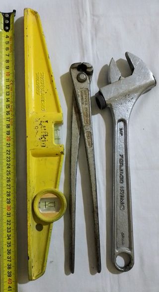 NIVEL STOSSFEST ANTICHOK , TENAZAS KNIPEX , LLAVE FORJADO IRIMO , SERRUCHO PILANA , METRO 25 M CHESTERMAN , HACHA MARTILLO BENDER , CEPILLO O GARLOPA PEUGEOT FRERES DE ACIER FONDU , LLAVE PICO LORO CREATOR , 2 DESTORNILLADOR , TENAZAS ANTIGUAS , CORTAFRÍOS BRUNON 400 MOB , ALICATES NWS DE SOLINGEN , TIJERAS AUSTE-ESTANA E , METRO STANLEY 5 M , MAZA 3 KILOS , 3 MARTILLOS BELLOTA , PLOMADA DE BRONCE MACIZO Y 2 PUNZONES , VER FOTOS