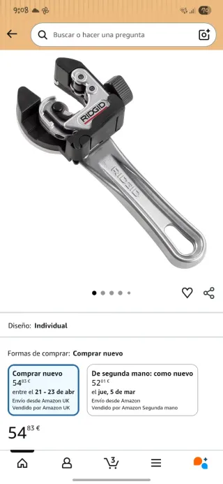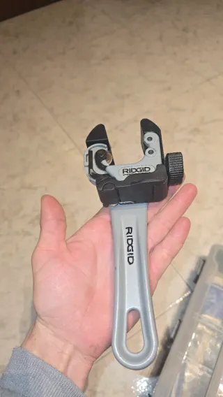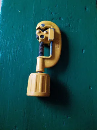 Cortatubos de la marca Ridgid, diseñado para cortar tubos de cobre. Es una herramienta manual robusta y fiable. - Marca: Ridgid - Material: Metal y plástico - Color: Gris y negro Muy poco uso solo 2 instalaciones y tiene cuchilla nueva de repuesto Mango de aluminuo y cuerpo de cortador de aluminio.