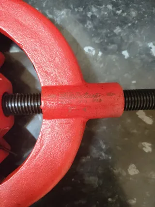 Herramienta para roscar tubos metálicos. - Cuerpo de metal rojo. - Incluye cabezal para troquel.