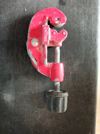 Herramienta para cortar tubos de metal. - Cuerpo de metal rojo. - Mango ergonómico.