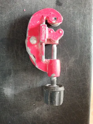Herramienta para cortar tubos de cobre, latón o aluminio. - Rango de corte: 3 a 28 mm. - Cuerpo de metal rojo. - Rueda de corte afilada.
