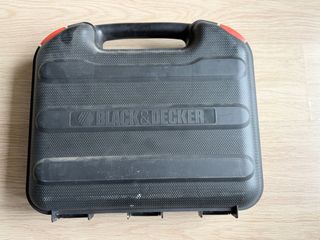 Taladro Black€Decker con 2 baterías pero con el motor averiado ya que tiene poca fuerza, para reparar. Maletín de transporte para herramientas Black & Decker. Diseñado para proteger y organizar tus equipos. - Color negro con detalles en rojo. - Asa de transporte integrada. - Cierre de seguridad.