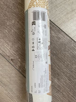 Rollo empezado de papel pintado con un diseño botánico en tonos tierra y grises. - Diseño de hojas y cañas. - 7 metros lineales + retales