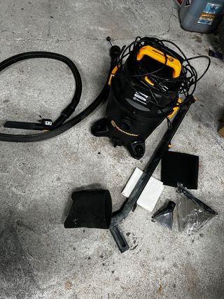 Aspiradora industrial Vacmaster en color negro y amarillo, diseñada para tapicería. - Manguera flexible. - Accesorios para limpieza tapicerias y alfombras - Filtro. - Bolsa nueva - Cable de alimentación.