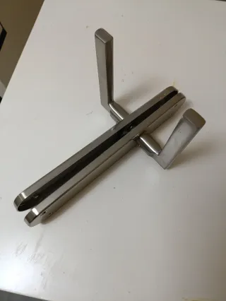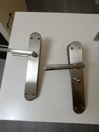 Juego de manillas para puerta fabricadas en acero inoxidable. 9 juegos completos, tres de ellos con cierre. Son robustas y elegantes. - Material: Acero inoxidable. - Diseño moderno.