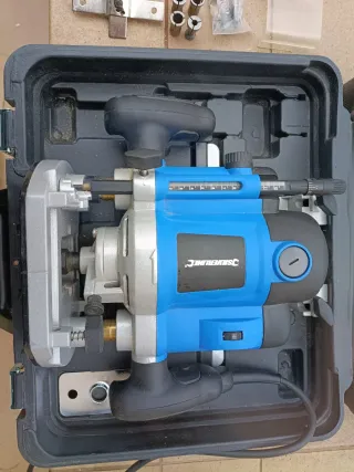 Fresadora Silverline de 2050W, ideal para trabajos de carpintería y bricolaje. Se vende en su maletín original. - Potencia: 2050W - Incluye maletín de transporte.