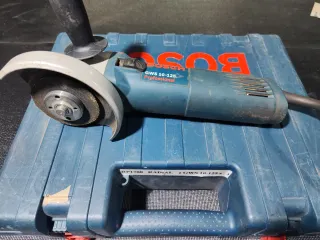 Amoladora angular Bosch GWS 10-125 en su maletín. - Modelo: GWS 10-125. - Incluye maletín de transporte. - Mango auxiliar.