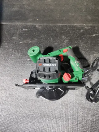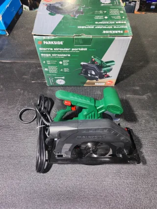 Sierra circular portátil de la marca Parkside. Ideal para cortes precisos en madera y materiales de construcción. - Modelo: PKS 135 B2 - Potencia: 1350 W - Diámetro del disco: 190 mm - Profundidad de corte ajustable
