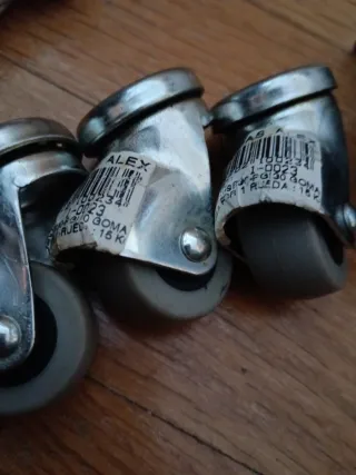 Set de 4 ruedas giratorias para muebles. Cada rueda soporta hasta 15 kg. - Marca: ALEX - Modelo: 1-0023 - Material: Goma - Carga máxima por rueda: 15 kg