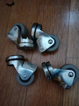 Set de cuatro ruedas giratorias para muebles. Son ideales para facilitar el movimiento de mobiliario. - Ruedas de goma negra. - Soporte metálico. - Incluye tornillo de sujeción.