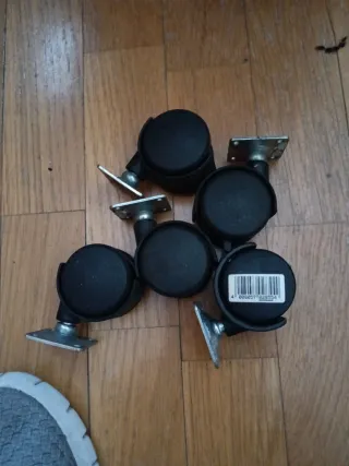 Set de 5 ruedas giratorias para muebles. Ideales para facilitar el movimiento de mobiliario. - Material: Plástico y metal. - Color: Negro y plateado. - Incluye tornillos de montaje.