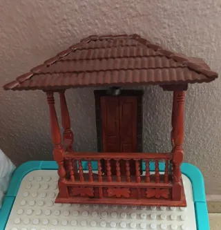 Réplica detallada de un balcón canario, ideal para coleccionistas o decoración. - Fabricado en madera. - Diseño tradicional con barandilla y tejado. - Puerta doble en la parte trasera.