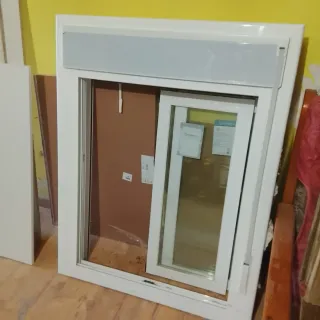 Ventana de aluminio con persiana,sin usar. Se instaló y se tuvo que desmontar a los 3 días por cambio de diseño, está nueva Con solape en el interior de unos 3cm, perfecto acabado en la instalación. - Marco blanco. - Diseño moderno. Medidas: Ancho 85cm Alto 111cm Grosor 13,5cm