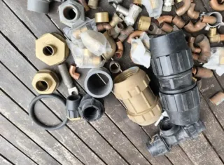 Varios accesorios laton, Jimten, cobre NO NEGOCIABLE MINIMO LO QUE VES EN LA FOTO ENTRE ELLOS UN MANGUITO JIMTEN DE 50, UN MANGUITO DE LATÓN DE 63, VARIOS CODOS DE COBRE DE 15,18,22 Aunque tienen polvo, son nuevos TEL 655 11 45 51