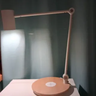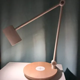 Lámpara de escritorio con brazo articulado y base con cargador inalámbrico. - Brazo extensible y orientable.