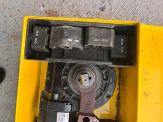 Curvadora eléctrica REMS modelo 580000. - Incluye juego de mordazas de diferentes tamaños. - Maletín de transporte amarillo.