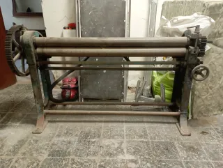 Máquina curvadora de chapa metálica. - Superficie de trabajo: máximo de 1050 mm - Estructura metálica resistente. - Rodillos para curvar chapa. - con ruedas para su fácil movimiento. - Se ha utilizado para cilindrar chapa de aluminio de 0,6.