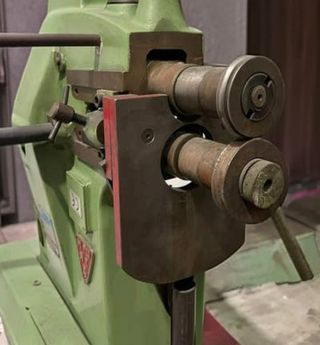 Máquina curvadora y enderezadora de chapa y varilla en buen estado. Ideal para trabajos de metal. - Tres rodillos para curvar y enderezar. - Estructura robusta de acero. - Motor eléctrico incluido. - Dispone de un pedal para su accionamiento.
