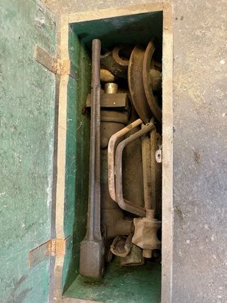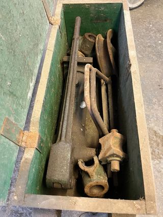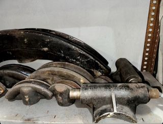 Herramienta antigua para curvar tubos, ideal para coleccionistas o proyectos de restauración. - Fabricada en metal resistente. - Diseño robusto y funcional. - Incluye varias piezas y accesorios.