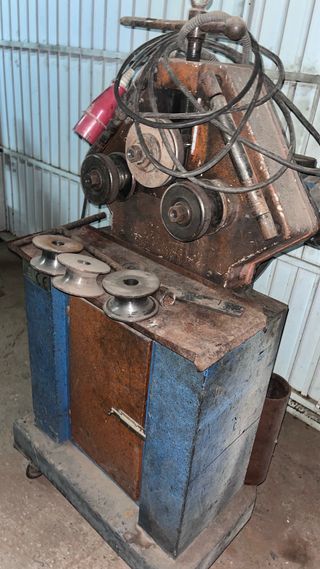 Máquina curvadora de metal de tubos de pletina. ideal para trabajos industriales.Llamar al 676702425. Solo se da información por teléfono en llamada. Sin compromiso. Se vende por jubilacion. - Estructura robusta de metal. - Rodillos para curvar perfiles.