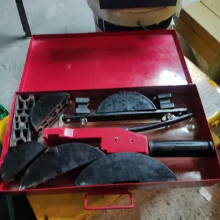 Herramienta manual para curvar tubos. Incluye varias piezas para diferentes medidas. - Cuerpo principal de la curvadora. - Juego de matrices y adaptadores.