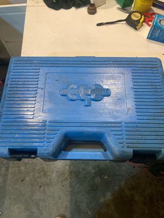 kit de curvadoras de mano para tubería (ideal fontanería/aire acondicionado). Incluye dos piezas para diferentes diámetros y accesorios en su maletín de transporte azul. Buen estado y funcionamiento fluido. Incompleto. - Curvadora de tubos de alta calidad. - Maletín resistente para almacenamiento.