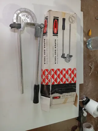 Herramienta para doblar tubos de la marca SUPER-EGO. - Incluye maletín rojo para transporte. - Juego de rodillos para diferentes diámetros. - Mango de presión. Negociable