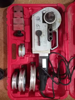 Se vende máquina curvadora de tubos en su maletín. - Incluye varias boquillas de diferentes tamaños. - Incluye la herramienta principal y cable. - Maletín azul para transporte y organización.