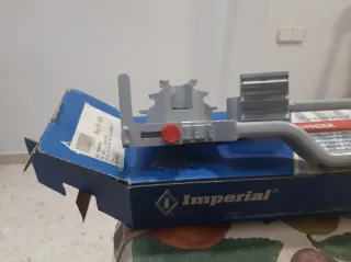 Herramienta para curvar tubos de cobre y aluminio. - Marca: Imperial. - Mango ergonómico con empuñadura azul. - Escala de medición en el cuerpo de la herramienta.