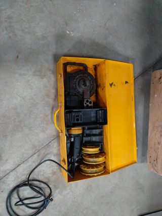 Curvadora hidráulica manual con todos los accesorios. (Tiene muy poco uso) COMPROBADA Y FUNCIONA Curvadora manual hidraulica en perfecto estado y funcionamiento para tubería de acero, tuberia acero electrico…. Se puede curvar cualquier material: aluminio,inoxidable, hierro, acero…. completa con accesorios desde 3/8 hasta 1-1/4 pulgadas ,con su arcon,similar a rems,rothenberger, ridgid, virax, súper ego, ega… foto 6 y 7 sale el diametro mas grande de tubo (75 de diametro) y el mas pequeño de tubo (15 de diametro) SE ENCUENTRA 20 MINUTOS OLOT SE PODRIA MANDAR / ENVIAR POR CORREOS / TRANSPORTE 80x30x35 72kg “se escuchan ofertas”