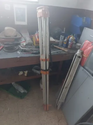 Trípode profesional para trabajos de topografía. Es robusto y fácil de ajustar. - Patas extensibles de aluminio. - Cierres de seguridad. - Base estable.