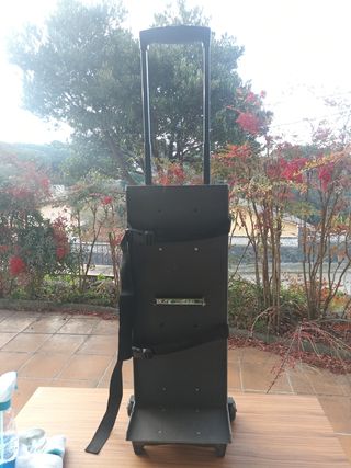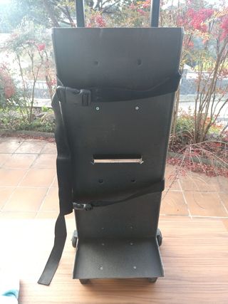 Carretilla pequeña con arneses, ruedas y mango extensible hasta 1'10m. Medidas plataforma 27'5*66cm