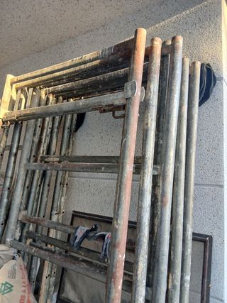 Conjunto de andamios metálicos, ideales para trabajos de construcción o reformas. - Tubos de metal galvanizado. - Varios tramos disponibles. - Listos para usar.