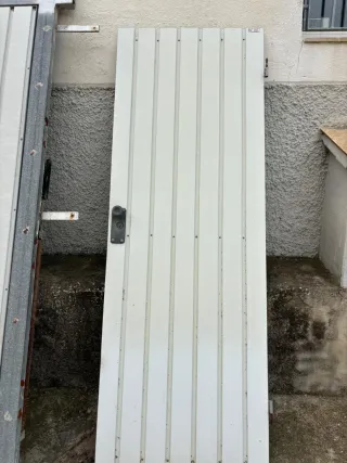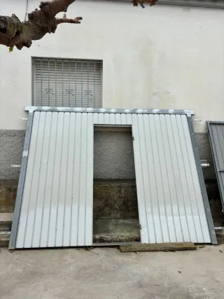 Puerta de metal para almacén con medidas de 2,40 metros de alto por 3 metros de ancho. - Material: Metal. - Color: Blanco.