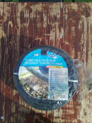 Tubo de riego por goteo flexible y exudante. - Diámetro: 16 mm - Longitud: 25 metros - Color: Negro
