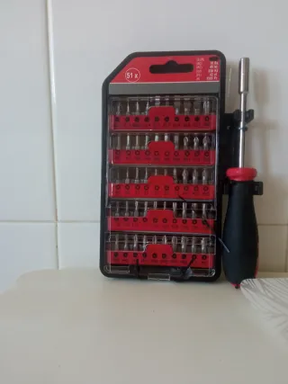 Este juego de destornillador incluye un mango ergonómico y una variedad de puntas para diferentes usos. - Mango de destornillador. - Puntas PH1, PH2, PH3. - Puntas SL4, SL5, SL6. - Puntas PZ2. - Puntas T5, T6, T8, T10, T15, T20, T25, T27. - Puntas H1.5, H2, H2.5, H3, H4, H5, H6, H8.30. - Estuche de almacenamiento.